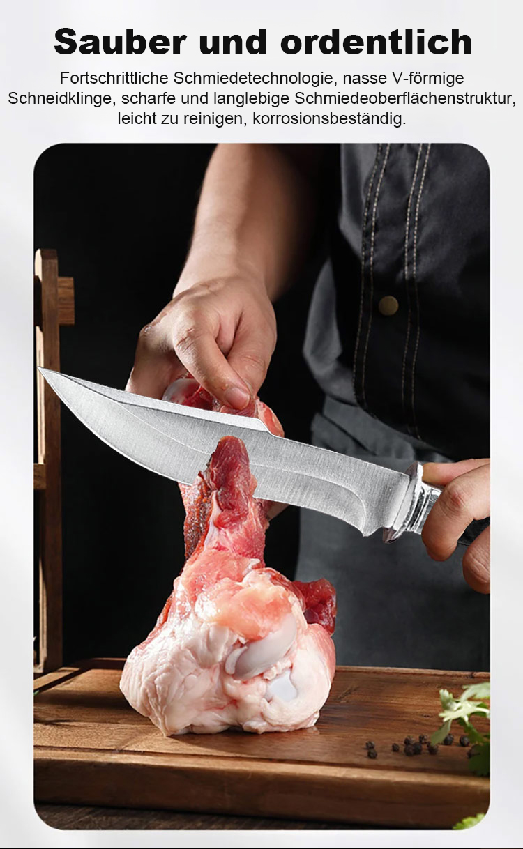 🥩 Leistung: 60+ HRC. Schneidet Fleisch & Knochen mühelos.